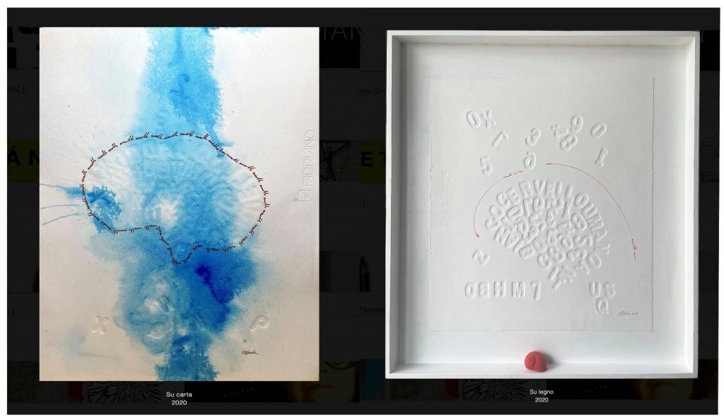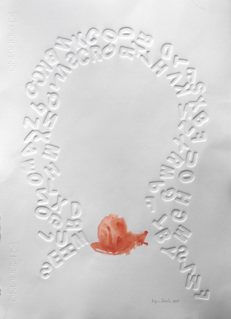 Calogero Barba cosciente del valore evocativo della scrittura creativa, dispone il suo sug-gestivo rapporto con le impressioni visive delle lettere “sottopressione” da cui scaturiscono i ritmi della forma per andare al di là del segno impresso sul bianco della carta. «Nel tem-po della liquidità e del bla bla bla, dei social media diffusi ovunque, tutto è comunicazione, la parola perde di continuo il suo forte significato semantico. La libera scrittura impressa sulla carta interagisce con la dimensione del formato del foglio evidenziando il rapporto con lo spazio, il segno e la fragile materia della carta – racconta Barba –. Le libere scrittu-re impresse, lontane dalle strutture grammaticali e dall’ordine del discorso lineare, sono di-sposte sul piano e impresse dal torchio calcografico assumendo il valore di una sosta visi-va dello sguardo che non svela il silenzio della stessa storia», continua a spiegare l’artista che con questa mostra intende contribuire alle attività sociali e culturali a Danisinni e del Mu.S.Da. di cui è membro, ma anche un omaggio a questo piccolo rione che conserva la sua memoria agreste con i suoi orti, i coltivatori, il rapporto con gli animali, una dimensione fortemente umana e senza tempo in una città come Palermo che ha subito profonde ferite causate da un’urbanizzazione talvolta incontrollata e spropositata.