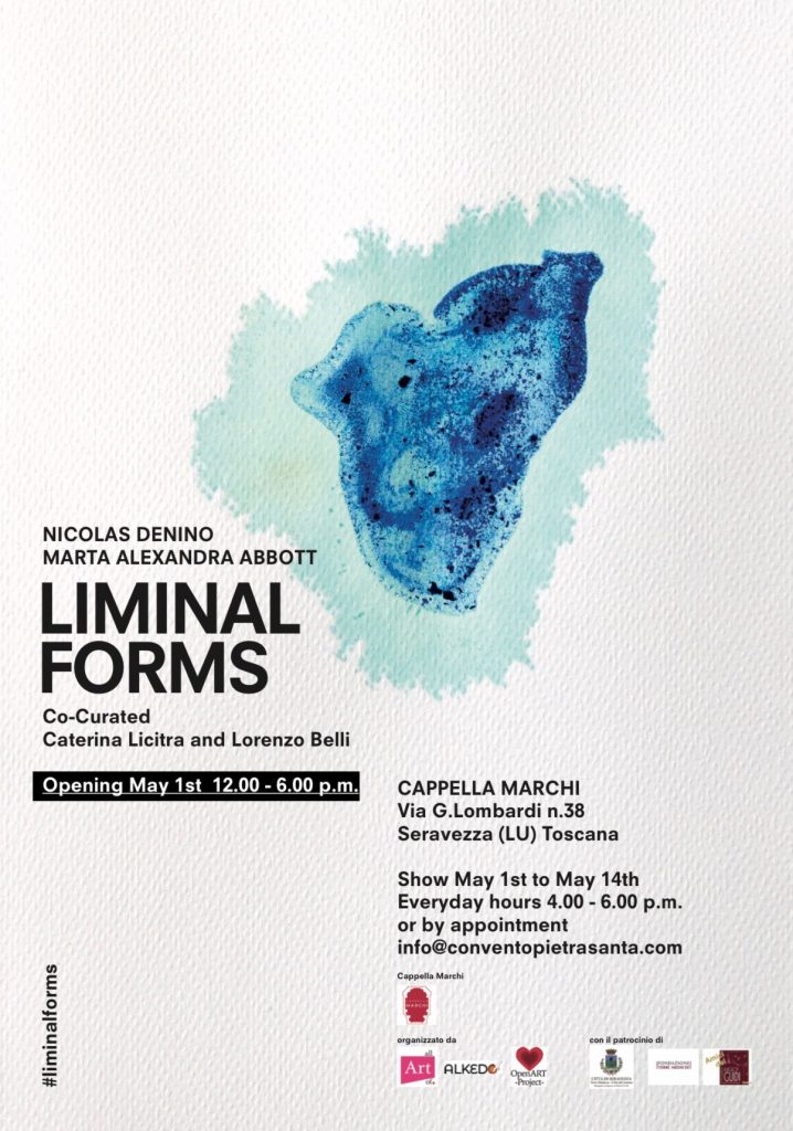 La stagione artistica organizzata da associazione Alkedo nel nuovo spazio “Cappella Marchi”, presso l’oratorio della Madonna del Carmine di Seravezza (LU), prenderà forma con l’esposizione “Liminal Forms” di Nicolas Denino e Marta Abbott.