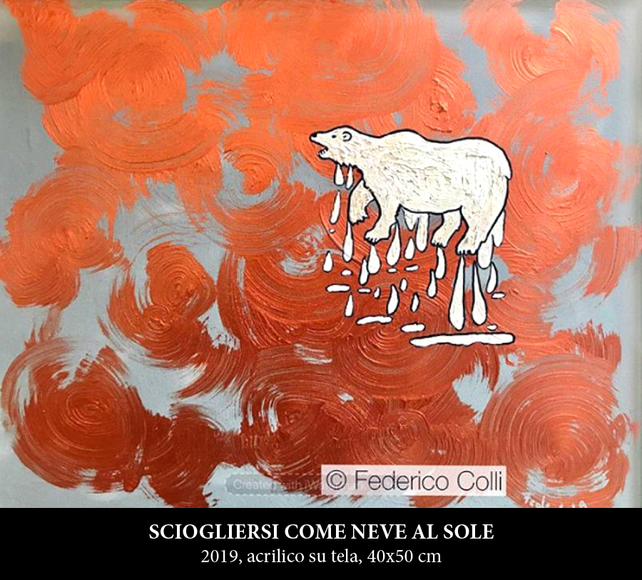 L'onestà intellettuale e la coerenza comportamentale, che definiscono il percorso artistico di ricerca pittorica di Federico Colli, sono racchiuse al contempo e contestualmente entro e oltre una formula di eclettico informalismo visionario, che scaturisce direttamente dal guizzante e incalzante genio creativo, che si allinea perfettamente in sintonia con il suo dinamico e vitale modus pensandi e operandi e segue una linea immaginaria di fil rouge tracciata dal suo pensiero esistenziale e dal suo stile di vita, sempre molto determinato e intraprendente, sicuro e deciso, proiettato con una grande apertura mentale, recettiva e percettiva a tutto campo e a tutto tondo. La dimensione figurale risulta di rimando improntata con un'impostazione, che supera e oltrepassa i limiti restrittivi nei quali la tradizione accademica e dottrinale più dogmatica e rigorosa vuole costringerla e comprimerla e risulta palesemente affrancata e indipendente. L'ostentazione e l'esibizionismo non gli appartengono e non sono mai contemplati nella poetica espressiva e nel registro linguistico di Colli, preferendo orientarsi e canalizzarsi verso e oltre, dando risalto e importanza ai messaggi sostanziali e ai contenuti insiti molto pregnanti e di spessore, che avvalorano l'intera sperimentazione, che non viene mai concepita come mero esercizio tecnico fine a se stesso. La Dott.ssa Elena Gollini che si occupa della gestione della comunicazione mediatica della pregevole arte di Colli, ha dichiarato: “Certamente la pittura di Federico possiede delle componenti distintive e delle caratteristiche peculiari molto interessanti e ben qualificanti, che guardano ad un'arte di istanza e di matrice internazionale e cosmopolita, ma altresì si crea attorno una sorta di nicchia preferenziale e privilegiata di spunti e di riferimenti da cui attingere, che trovano il loro DNA genetico costitutivo in una dimensione esistenzialista e filosofico esistenziale di toccante intensità. Ogni opera per Federico è come uno scritto inedito, un racconto sui generis, che anche nel titolo risulta sempre molto eloquente ed emblematico. Ogni opera diventa la metafora di un fiume profondo, dove l'acqua penetra e si spinge in profondità scandagliando a fondo e sulla superficie scorre e procede in continuo e costante flusso in divenire. Federico cerca la perfezione nell'imperfezione, l'originale nel banale, l'analisi attenta oltre l'approccio marginale, l'avanzare oltre l'accontentarsi, la resistenza attiva oltre il lasciar perdere. Il suo spirito di uomo-artista resiliente temprato viene traslato e trasportato nel suo fare arte e si fonde e si mescola in commistione con lo spirito di esteta, con il gusto del bello e del piacevole, compensato anche dall'essenza sostanziale, che completa, integra e perfeziona ogni scenario narrativo con un quid impeccabile”.