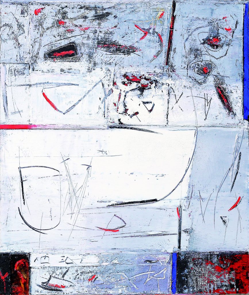 La tela è il suo diario quotidiano ; su di essa una spinta interiore irrazionale guida la mano mentre l’occhio critico sorveglia pesi e armonie e attende che il quadro arrivi , come un prodigio, a maturazione.