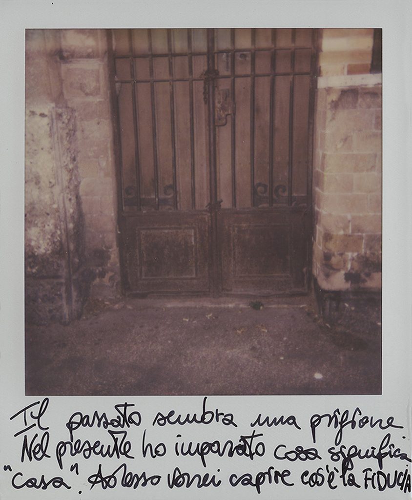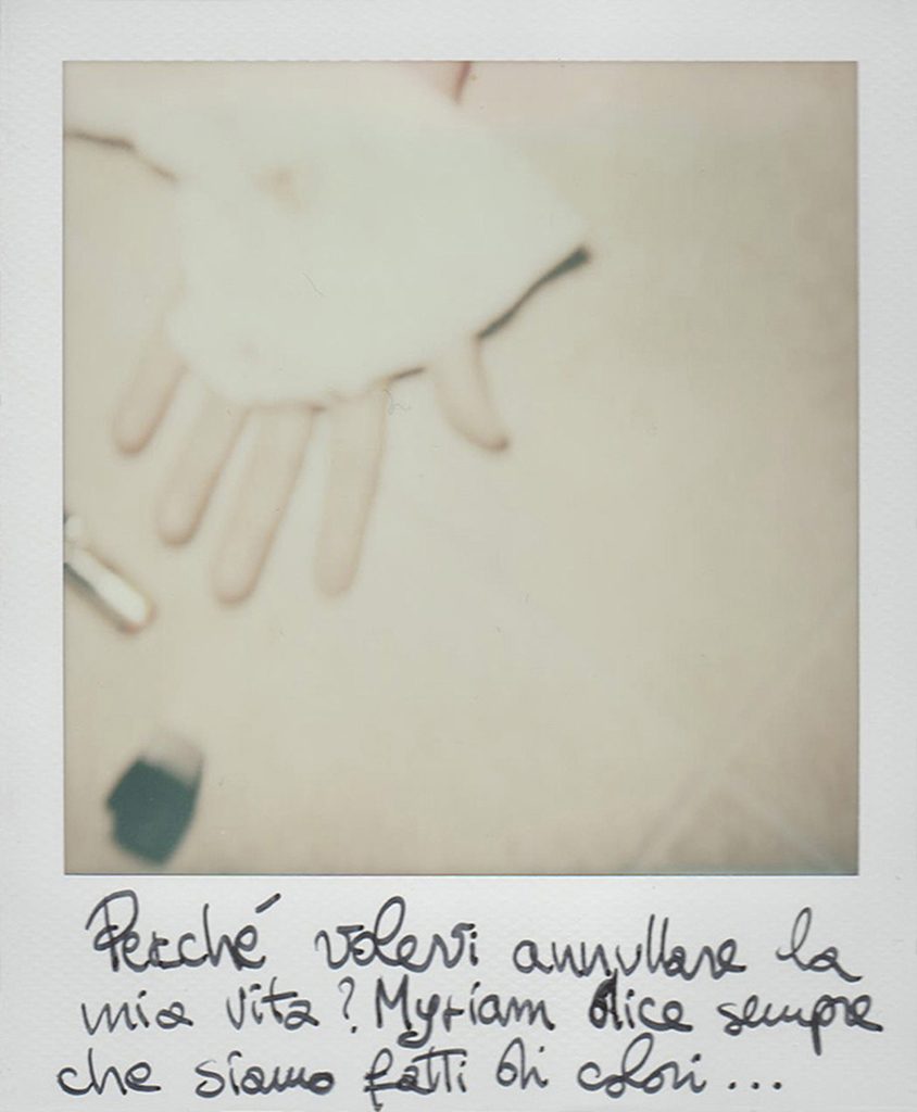«Oggi grazie al sostegno della mia famiglia, delle poche nuove amicizie e della fede sto imparando a godermi le cose semplici della vita, ad apprezzarmi, a vedermi bella. Eppure l’unica cosa di cui ho ancora paura sono proprio le cose belle. Mi riaccosto a loro con cautela sperando che non volino via. Troppe parole importanti sono state calpestate, troppa bellezza fatta a pezzi, cancellata. Oggi so che è la mia storia. Ho comprato delle Polaroid che sono diventate la mia terapia. Difficile staccarmi dalla sofferenza che sentivo e dire, a chi mi stava intorno, "scatta adesso". Ho affiancato i loro pensieri ai miei come su un diario… un diario che non potrò mai cancellare, nonostante la forza di ricominciare».