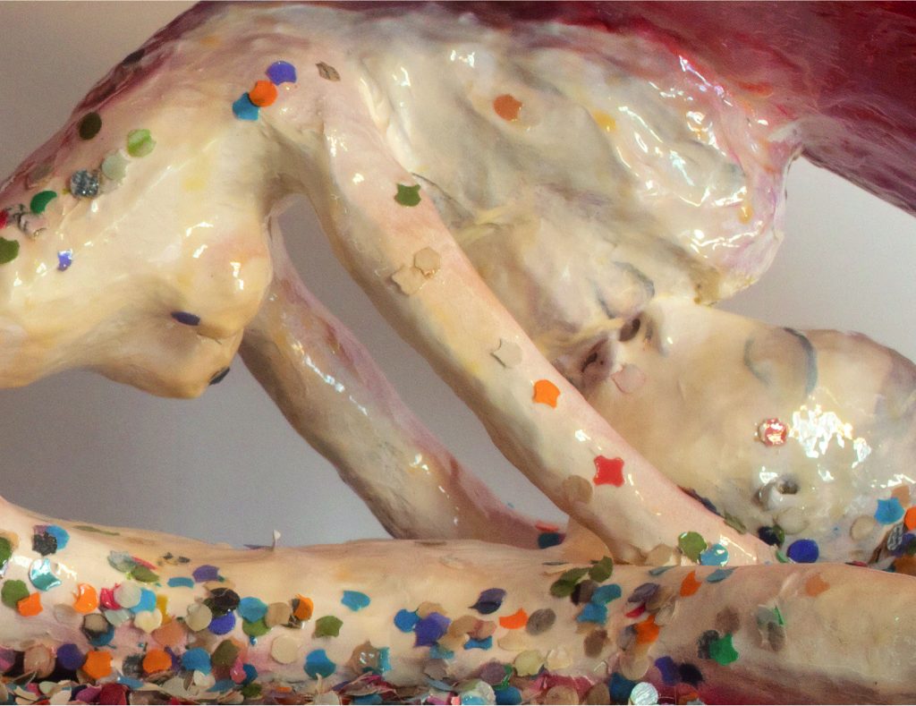 Love is Blind | Blind for Love: opera opere è un itinerario, o per meglio dire, un percorso ‒ a più entrate e molteplici uscite ‒ che cattura e coinvolge il visitatore attraverso nove sezioni, ispirate nella narrazione al mito di Amore e Psiche raccontato da Apuleio nelle Metamorfosi, più noto come Asino d’oro, composto nel II secolo d.C. e nella creazione delle opere a grandi maestri nel campo della musica, della letteratura, del cinema e dell’arte. Il titolo dell’esposizione riparte da Platone, dall’amore e dalla vanità e gioca con gli stereotipi perché è cieco chi vede solo l’oggetto del proprio desiderio e perde di vista le realtà del cuore, mentre l’amore rivela uno dei mondi possibili. Ogni creazione è un’opera: ognuna di esse fa parte della storia ed è associata a una musica. È un viaggio tra provocazioni tattili, stimoli visivi, suggestioni musicali e vocali, sollecitazioni olfattive che l’artista integra in un flusso emotivo continuo. I brani di esecuzioni liriche (la parola opera usata nel titolo si riferisce all’opera lirica, che per Caroline Lépinay rappresenta una delle espressioni artistiche più complete) sono una guida privilegiata verso altri spazi virtuali intuibili e sperimentabili.