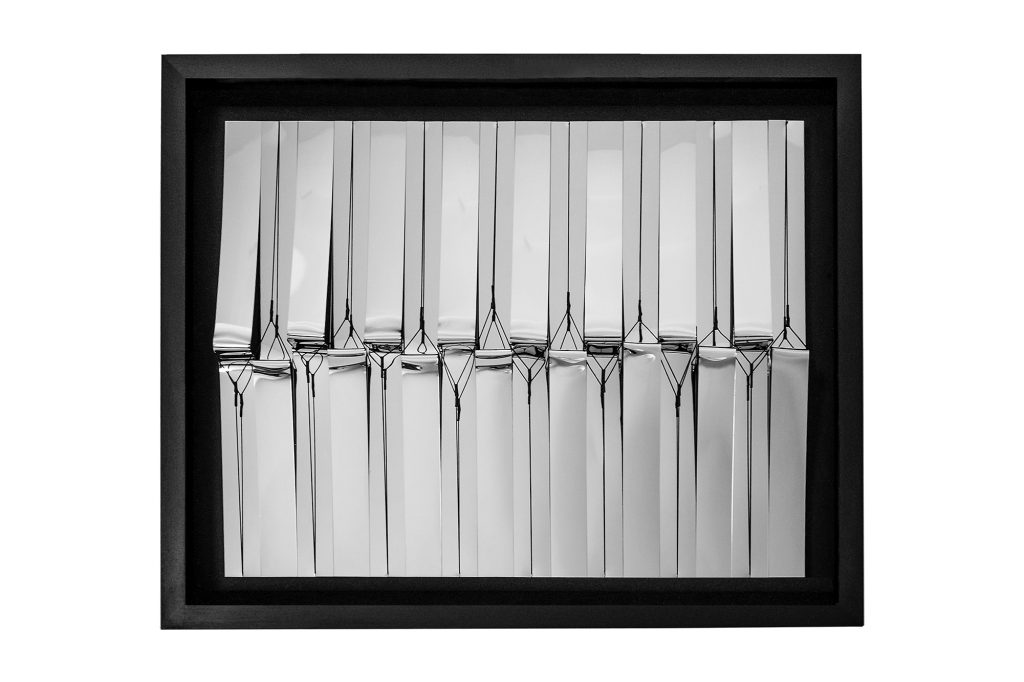 Lo scontro navale che ebbe luogo il 7 ottobre 1571 nelle acque di Lepanto, segnò una svolta epocale nella storia del Mar Mediterraneo e di tutti quei paesi che, fino ad allora, erano stati coinvolti nella lotta per arginare la minaccia turca. La battaglia, tema caro all’attività pittorica di Salvator Rosa, fu uno dei suoi soggetti preferiti fin dagli esordi. Coppeta percependo la volontà del maestro, di andare oltre la meraviglia visiva, sceglie di agire direttamente nella terza dimensione, deformando materiali specchianti e sottolineando il ruolo decisivo che le tensioni hanno in questo dialogo. Ad aiutarci in questo processo di decodifica di un linguaggio che ha avuto il suo exploit nel seicento napoletano, è la ricerca “Riflessi e Deformi” dell’artista Max Coppeta, opere che esplorano la proprietà dell’acqua e dei liquidi di ingrandire oggetti immersi in essa a causa della differenza dell’indice di rifrazione. Questa indagine è una metafora sulla percezione della realtà, spesso distorta dalla fame di sopraffazione. La luce che, ne La battaglia di Lepanto, trafigge i visi dei protagonisti dei due gruppi antagonisti è reinterpretata in chiave contemporanea dall’artista, che la assimila, per rifletterla nelle sue sculture. Come in una scenografia, chi osserva, viene avvolto e catturato dalla forza attrattiva che anima le opere di Rosa e Coppeta. Questa forza, sembra fuoriuscire dalle figure per propagarsi nei rimandi di una storia che scuote il presente e torna ad essere forma nuova.