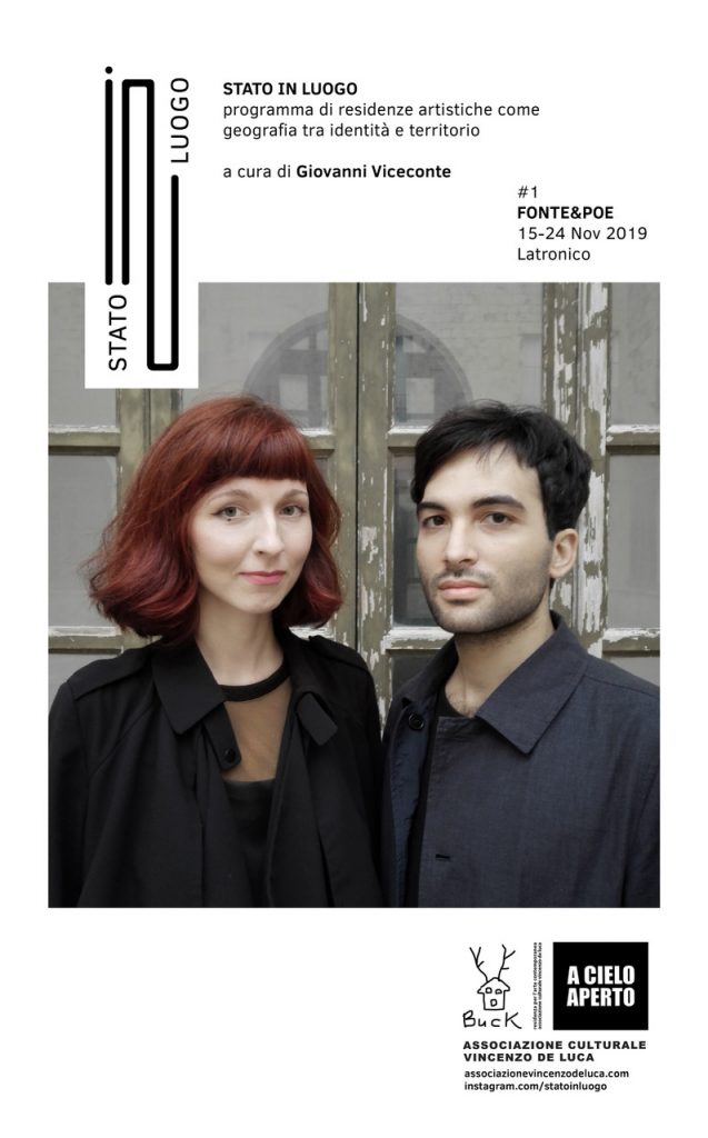 Stato in luogo #1 vedrà come prima residenza il duo Fonte&Poe - Alessandro Fonte (Polistena, IT 1984) e Shawnette Poe (Varsavia 1980) - coppia nella vita e nel lavoro, di base a Berlino. Il duo porta avanti un’indagine sulla possibilità della dimensione rituale collettiva nell’epoca attuale, trasformandola in processo artistico attraverso la messa in scena di azioni simboliche e interventi nello spazio. La loro ricerca parte dall’osservazione della specifiche realtà di un luogo e dalla rilettura delle impronte culturali, storiche, tradizionali, politiche, religiose/magiche e paesaggistiche.