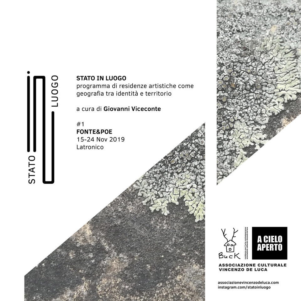 Nell’ambito del progetto A Cielo Aperto, sostenuto dall’Associazione culturale Vincenzo De Luca, curato dal 2007 da Bianco-Valente e Pasquale Campanella, dal prossimo 15 novembre 2019 viene proposto il nuovo programma di residenze artistiche dal titolo STATO IN LUOGO, a cura di Giovanni Viceconte.
