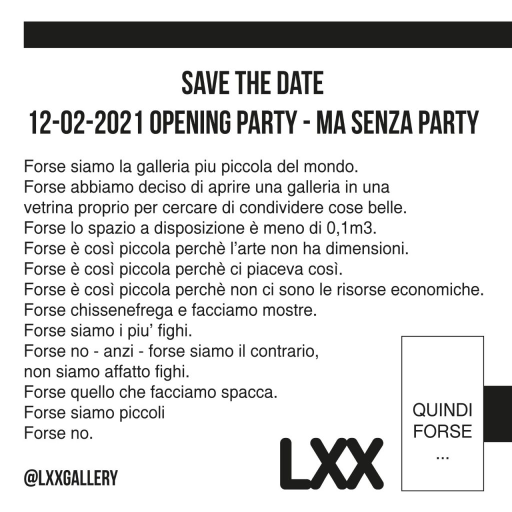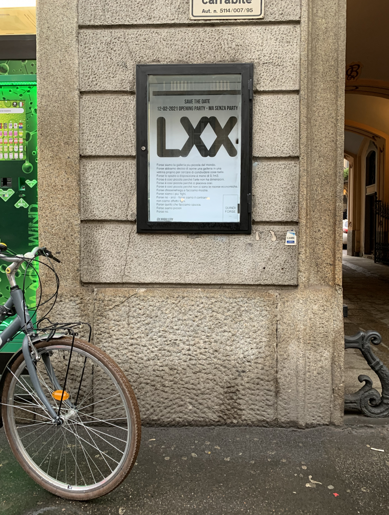 Il 12 febbraio 2021 LXX GALLERY(forse) la galleria più piccola del mondo: una vetrina su strada che