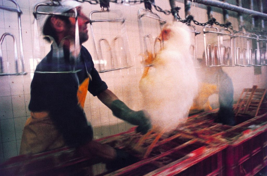 In questa mostra, curata da Simona Guerra, ci troviamo dentro a moderni mattatoi con immagini scattate da due diversi autori: Mario Giacomelli, che nel 1961 a Senigallia ha realizzato la sua serie Mattatoio, e Pino Dal Gal che nel 1976 in nord Italia ha realizzato Chicken story.
