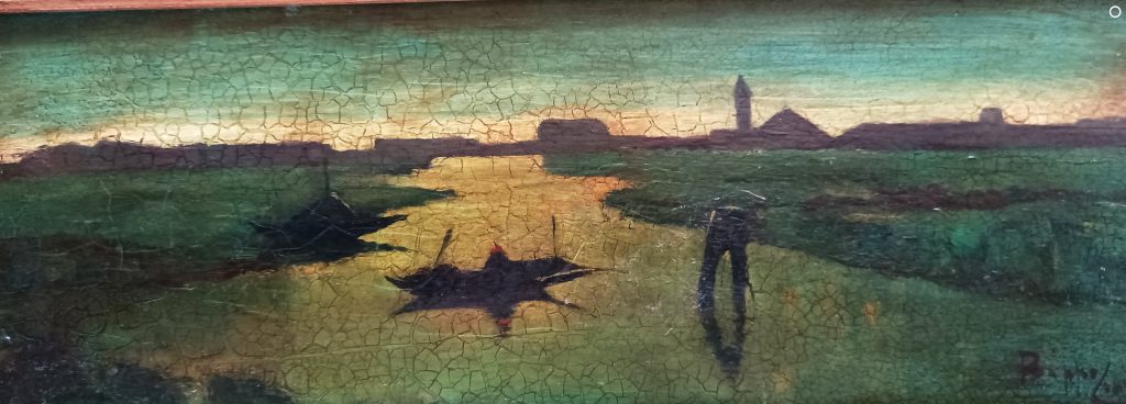 Il visitatore sarà accolto da due vedute veneziane del Settecento firmate da Michele Marieschi seguite da un raro disegno del 1872 di Giacinto Gigante, un bozzetto datato 1895 attribuito a Telemaco Signorini, con dedica autografa sul retro (Galleria Pesaro, Milano).