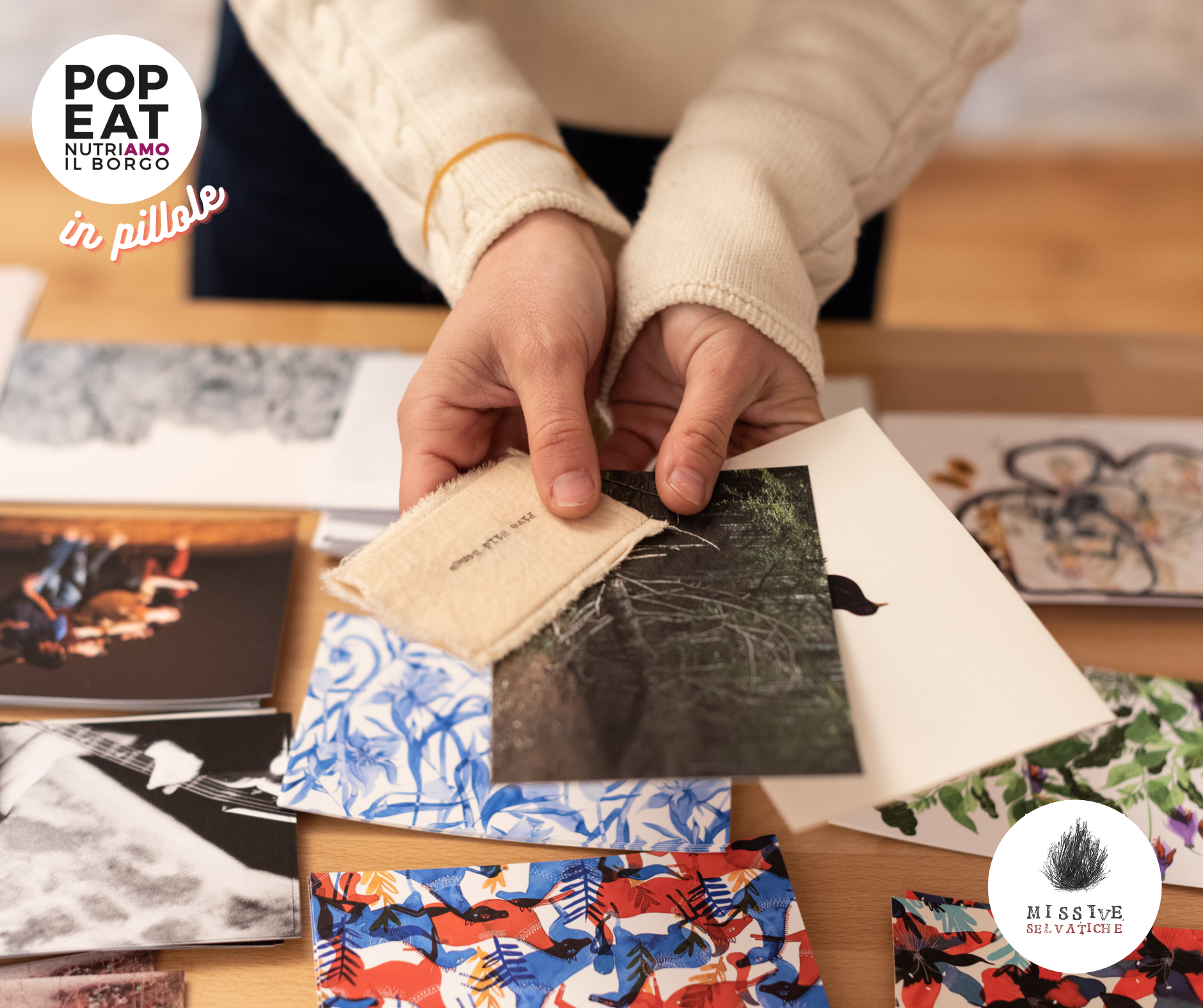 In occasione del festival Pop-Eat in Pillole e vista la riapertura di tutte le attività culturali, il format Missive Selvatiche è stato ripensato e, se prima le opere venivano racchiuse in una piccola “busta d’arte” ed imbucate direttamente nelle case, a partire da sabato 28 agosto fino al 28 settembre saranno fruibili sotto forma di manifesto e locandina d’artista e verranno collocate in più zone del comune di Castelnuovo Magra.