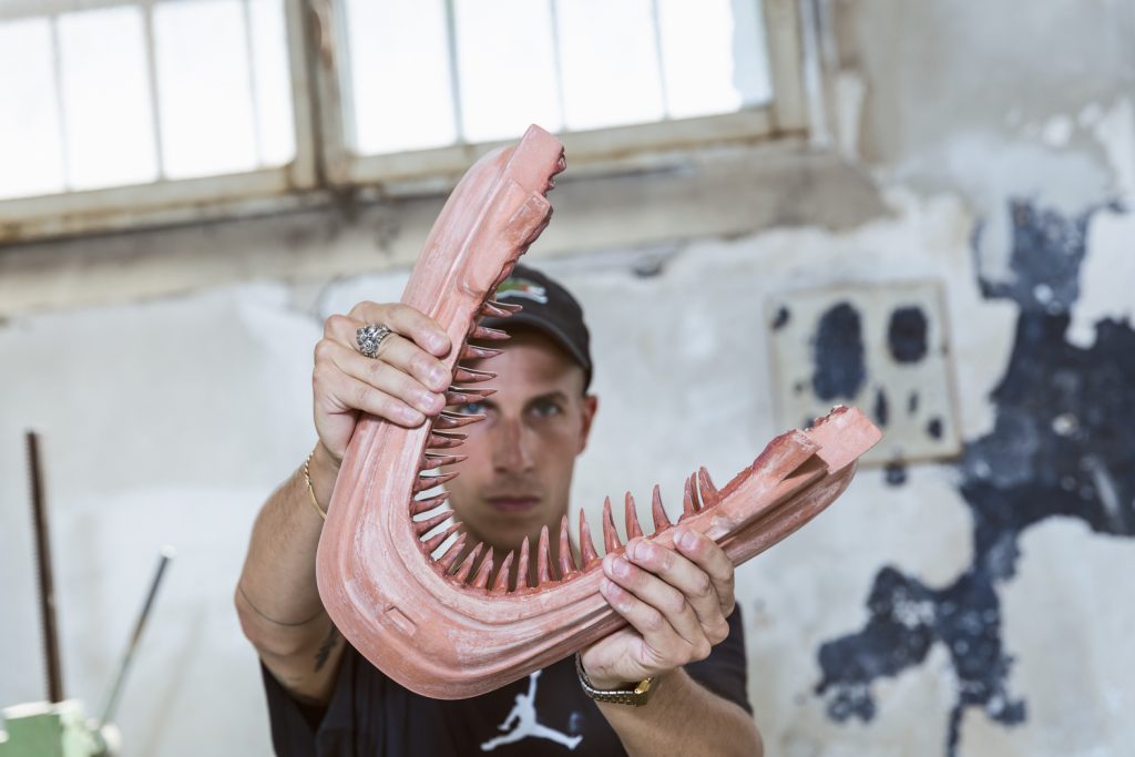 All'interno della Sala dei forni SLAG dialogherà con l'opera LACOSTE, una grande scultura in ceramica, che emulsiona scenari urbani ad immaginari primordiali e selvaggi.