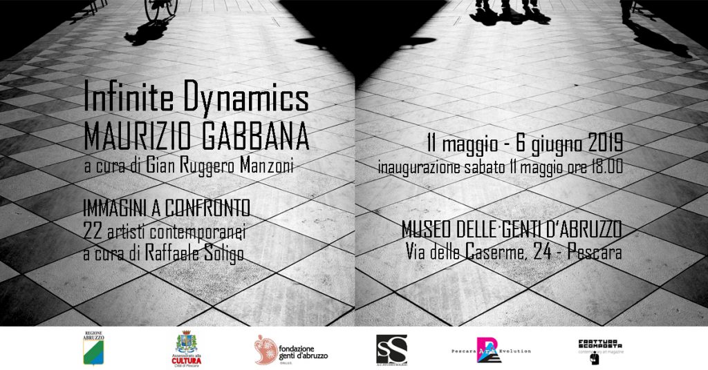 Sabato 11 maggio alle 18.00, presso il Museo delle Genti d’Abruzzo a Pescara, inaugura la mostra itinerante Infinite Dynamics di Maurizio Gabbana a cura di Gian Ruggero Manzoni. In tale occasione verrà presentata anche la monografia "Con la luce negli occhi" edita da Skira. L'esposizione sarà fruibile fino a giovedì 6 giugno 2019.