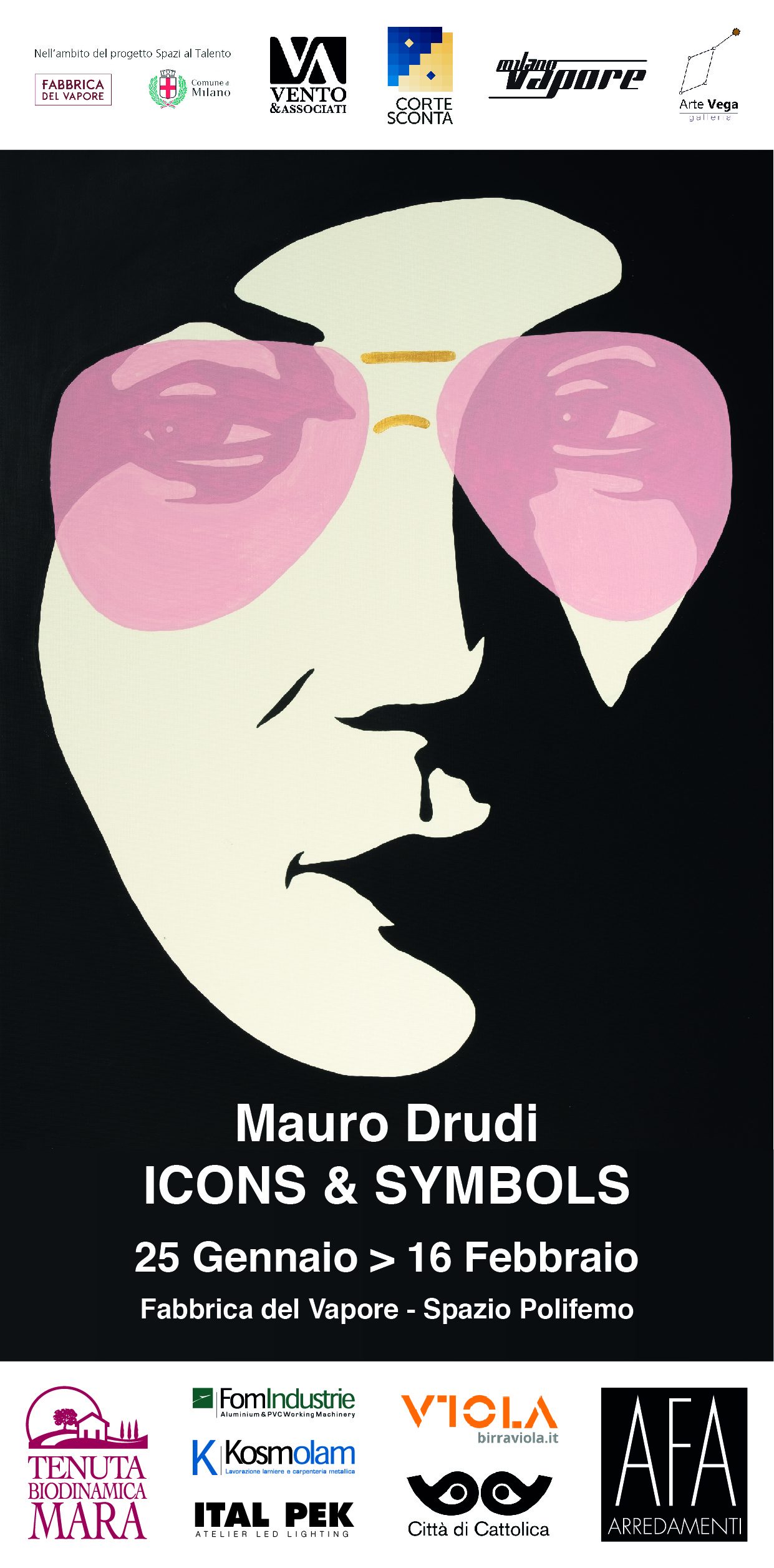 Reduce dai successi di mostre ed installazioni che negli ultimi due anni hanno avuto luogo quasi esclusivamente in terra siciliana in chiese consacrate e sconsacrate, con un’installazione ancora attiva presso il Museo Mandralisca di Cefalù, Mauro Drudi, artista romagnolo di 55 anni, mette in mostra i tre progetti più importanti ai quali sta lavorando, progetti che vedono nella città di Milano e nella Fabbrica del Vapore la loro collocazione ideale. “ICONS and SYMBOLS” mette in mostra infatti la serie “POP”; l’installazione sulla condizione della donna intitolata “LEI” e la ricerca sulle “sagome