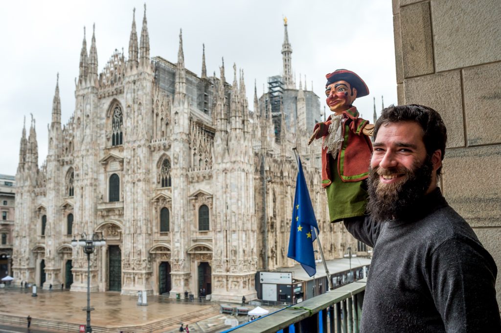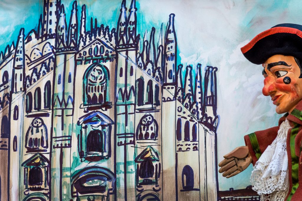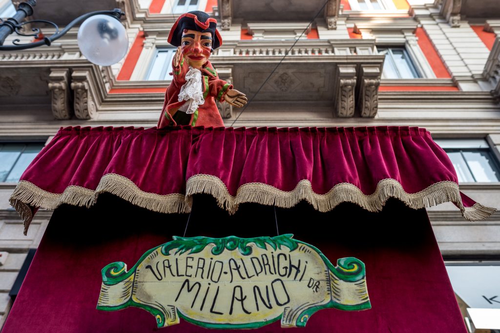 Valerio Saccà, fondatore della Compagnia Aldrighi, crea egli stesso i suoi “attori”, intagliandoli dal legno di cirmolo. Nella mostra saranno esposti, oltre ai suoi, anche un gruppo di burattini storici del Meneghino dal 1890 a oggi, prestati dalle principali collezioni italiane tra cui la Fondazione Benedetto Ravasio di Bergamo e l’Associazione Peppino Sarina di Tortona. Tra questi in particolare un pezzo dal Fondo Cortesi: il Meneghino di Giorgio Minutoli, burattinaio milanese che negli anni ‘50 del Novecento si esibiva al circolo dei Piccoli Motta in Galleria Vittorio Emanuele. Tra il materiale storico in esposizione anche i preziosi costumi indossati durante il Carnevale Ambrosiano (Fondo Famiglia Meneghina).