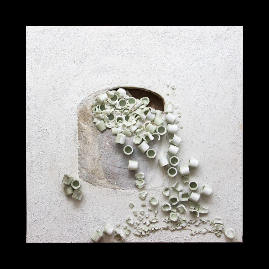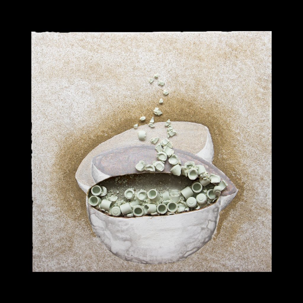Idiosincrasia, resilienza, empatia; sono le tre parole chiave metaforicamente rappresentate da Claudia Marinoni in questa mostra che vuole essere in sintonia col tempo rappresentando lo stato delle cose attraverso delle metafore: secondo l’artista “...siamo tutti contenitori affetti da idiosincrasie che traboccano contenuti e dobbiamo trovare qualcosa che offra contenimento a questo disagio! “