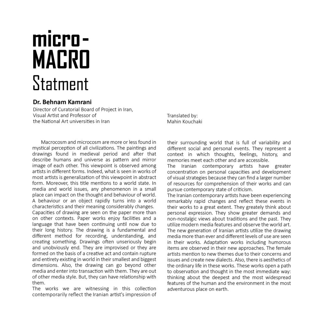 micro_ MACRO è un progetto artistico che ha l’intento di creare uno scambio culturale a livello internazionale nel mondo dell’arte contemporanea tra Italia e Iran.