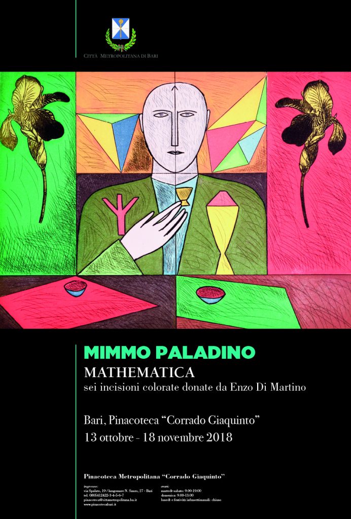 sabato 13 ottobre 2018 ore 17:30, presso la Pinacoteca di Bari, sarà presentata al pubblico la mostra “MIMMO PALADINO MATHEMATICA”