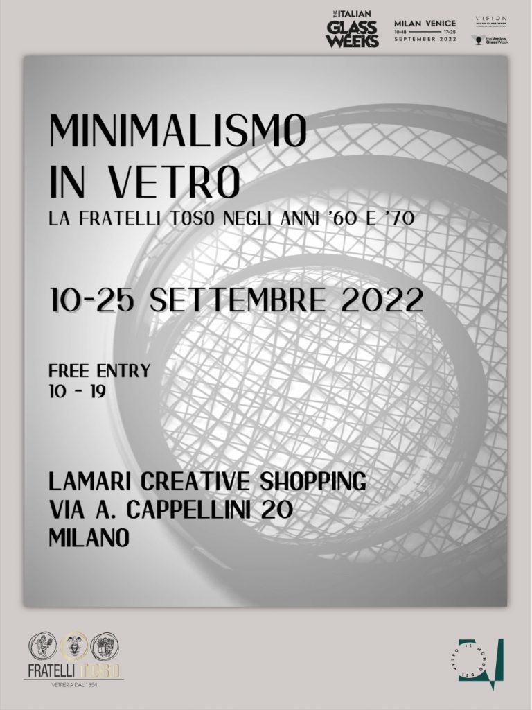 In occasione dell' Anno Internazionale del Vetro, Il Mondo del Vetro partecipa a The Italian Glass Week e presenta, in collaborazione con la Fratelli Toso, la mostra "Minimalismo in Vetro: la Fratelli Toso negli anni '60 e '70"