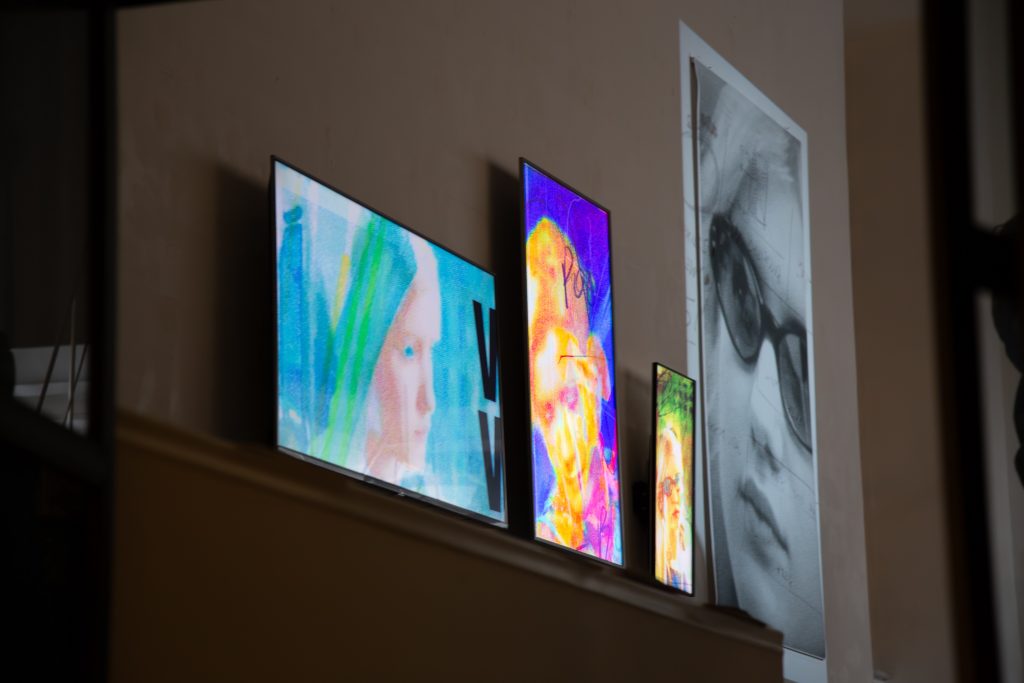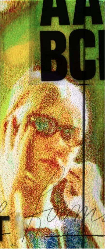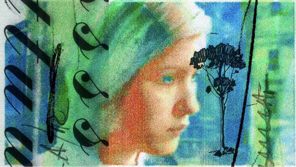 In particolare, focalizzandomi sulla mostra realizzata per Leonardi V-idea, non riesco a smettere di guardare la protagonista delle brevi sequenze create dall’artista, anche quando sono ‘looppate’ e si ripetono con brevi spezzoni e a intervalli rapidi. Intermittenti. E il mondo fantasmagorico in cui lei si muove e galleggia, nei colori acidi e pregnanti dello strumento video e degli interventi lettristi che scorrono in sovraimpressione, diventa anche il mio mondo.