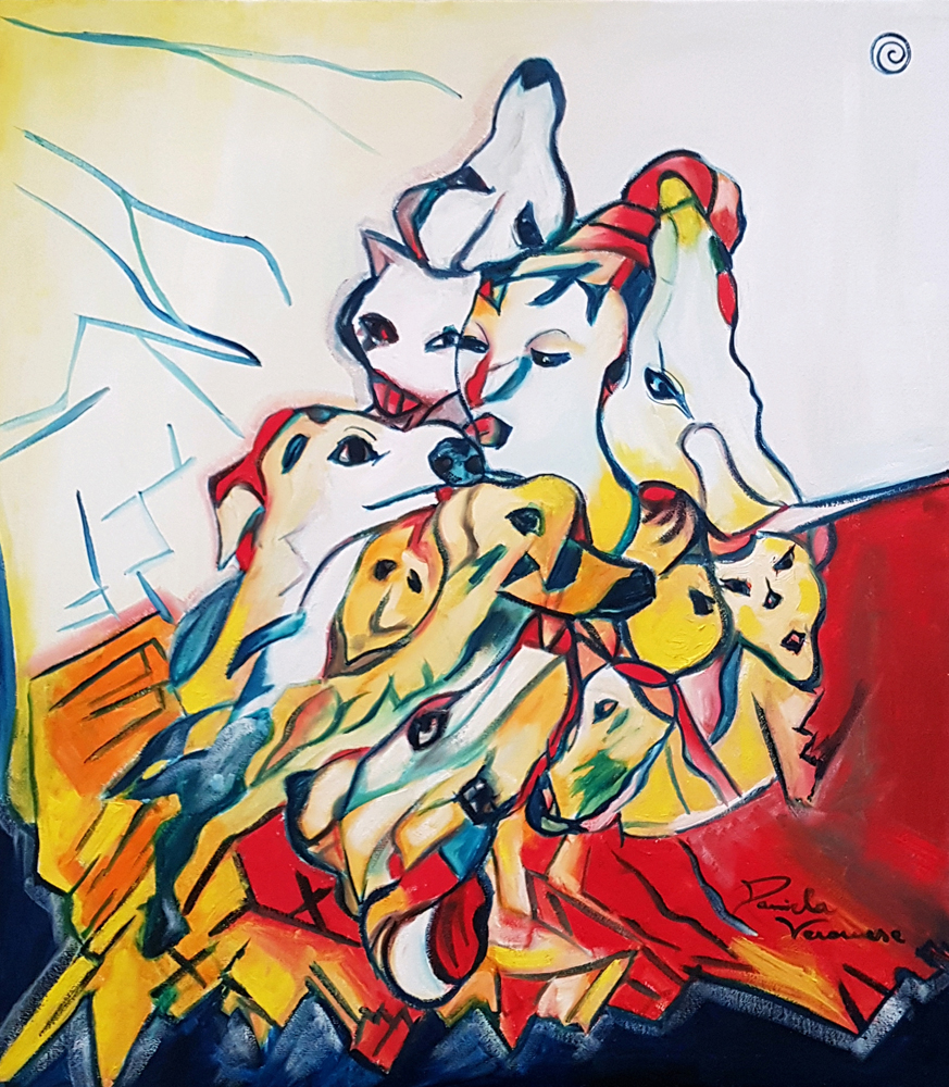 L'artista Daniela Veronese è stata inserita all'interno della piattaforma web delle mostre curate dalla Dott.ssa Elena Gollini con un circuito di 20 opere di intenso impatto espressivo, che meglio rappresentano e testimoniano il suo talento innato e le consolidate e radicate capacità di padronanza tecnica e strumentale, nonché la spiccata sensibilità che guida e sostiene la vena ispiratrice. La mostra online s'intitola “Arte e vita” proprio per enfatizzare la componente esistenziale ed esistenzialista, che ha un ruolo principale portante come radice di fondamento del suo fare pittorico. La Dott.ssa Gollini ha dichiarato al riguardo: “Dinanzi alle creazioni di Daniela eseguite con magistrale progettazione ideativa a monte, si comprende subito come il percorso di ricerca da lei seguito con fervida passione sia dettato da un coinvolgimento emotivo ed emozionale potentissimo, che influisce profondamente sul suo modus pensandi e operandi e si trasmette di rimando anche nel modus pingendi. Daniela dipinge nel moto dell'anima e questa vibrante e pulsante carica energetica la supporta e la sorregge nel trasferire e nell'imprimere alle raffigurazioni una grande vitalità, una forza comunicativa che si sprigiona a tutto campo e fuoriesce dalla superficie del supporto pittorico, espandendosi e dilatandosi. L'amore autentico verso il mondo degli animale e in particolare dei cani e dei gatti si percepisce in ogni opera a loro dedicata e diventa un notevole plus valore aggiunto sostanziale molto rilevante nell'insieme del costrutto. Anche i quadri dedicati al figurativo in stile ritratto prospettano sempre un particolare afflato di trasporto e di coinvolgimento, che la porta a realizzare una proiezione molto piacevole nell'impatto estetico, ma altrettanto intensa nel risvolto psichico e psicologico, riuscendo perfettamente a cogliere e a carpire anche i tratti e gli aspetti distintivi caratterizzanti del mondo interiore e introspettivo dei protagonisti immortalati. I colori sempre radiosi e luminosi hanno un'accattivante briosità e catturano e conquistano lo sguardo del fruitore, infondendo dinamismo e movimento alla narrazione visiva. Daniela non cerca di stupire e di sorprendere usando espedienti ridondanti e macchinosi e tanto meno elaborando prospettive figurali borderline, ma si affida a una soave, dolce e delicata poesia espressiva, a un elegante, raffinato e garbato virtuosismo scenico, che rende le opere pacatamente e sobriamente affascinanti. Nel complesso e troppo spesso esasperato panorama pittorico contemporaneo, senza dubbio Daniela emerge e si distingue per lo stile di classe, per il pensiero elevato, per l'espressione fluida e suadente come un'incantevole melodia sonora”.
