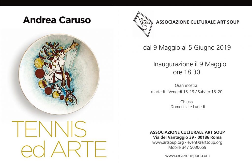 “Tennis ed Arte”, personale di ceramiche dello scultore Andrea Caruso, dedicate al tennis all’Associazione Culturale Art Soup di via del Vantaggio