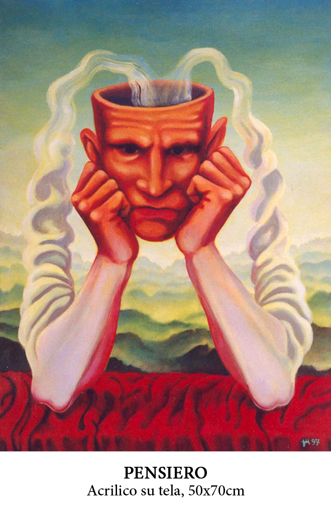 “La scelta del titolo -Trasformismo creativo- designato ad hoc per questa mostra online simbolo della vulcanica e camaleontica dimensione trasformista, che appartiene al DNA artistico di Tomaso Pirrigheddu ritengo sia assolutamente calzante e ben si coniuga con la sua vivace versatilità espressiva”. La Dott.ssa Elena Gollini evidenzia con precisione le caratteristiche distintive della produzione pittorica del talentuoso Pirrigheddu, entrato a fare parte del circuito selezionato delle mostre online da lei curate. Proseguendo nell'analisi di approfondimento ha poi ulteriormente rimarcato: “Le opere scelte appositamente per questa esposizione dimostrano la capacità e le risorse di Tomaso finalizzate ad una progressione artistica in costante divenire. Una progressione continua, che rafforza il suo potenziale comunicativo e si qualifica come sempre originale, mai scontata e mai ripetitiva. Tomaso ha la preziosa virtù innata di essere un creativo fantasista, riuscendo al meglio a reinventarsi nel suo operato e nella sua ricerca. Per Tomaso fare arte equivale ad una dinamica voglia di mettersi alla prova, è una sfida avvincente e sempre stimolante, sempre nuova e sempre sorprendente. Essere artista di spessore oggi più che mai significa essere alternativi rispetto allo standard, spiccare il volo e fare sempre un passo in più in avanti, avanzare con decisione verso ambiti applicativi atipici, inconsueti e inusuali, spingersi oltre le soluzioni più gettonate e più frequentemente proposte. Tomaso è in primis un libero battitore, un creativo che ragiona e decide con coerenza e consapevolezza delle proprie azioni. Le opere vanno pertanto osservate secondo parametri interpretativi contenuti e racchiusi dentro a una mimesi speciale, peculiare nella sua unicità costitutiva. Chi si addentra penetrando gli anfratti reconditi dell'articolato e sfaccettato mare magnum narrativo, può sempre trovare nuovi spunti da cui attingere, sollecitando la vista, ma anche tutti i sensi. Tomaso ci offre un'orchestrazione scenica inaspettata e imprevista, che può sempre essere integrata e modulata con nuovi inediti richiami, con riferimenti inattesi che affiorano e si palesano sulla superficie pittorica e prendono vita come entità, che entrano a fare parte del palinsesto rappresentativo e hanno ciascuna una propria specifica rilevanza evocativa, un proprio acclarato ruolo simbolico, metaforico, allegorico e allusivo. Per Tomaso l'arte diventa uno strumento efficace e funzionale per veicolare e convogliare messaggi subliminali profondi e intensi, per esternare un mix di contenuti, che difficilmente le parole potrebbero riuscire a spiegare e descrivere in modo compiuto ed esaustivo. E dunque il suo spirito trasformista accoglie l'arte proprio come un universo meraviglioso da plasmare e da forgiare in armoniosa evoluzione”.