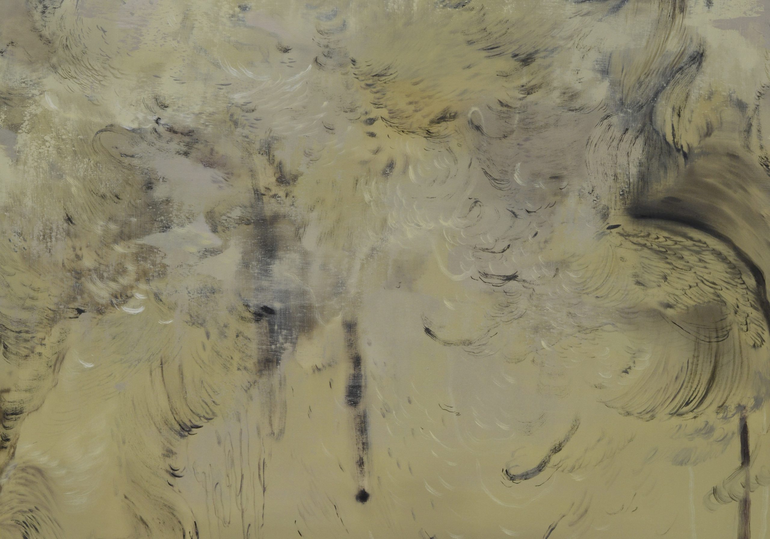 Nei quadri e nelle ceramiche torna lo stesso tipo di segno: un tratteggio grafico che a volte si sovrappone alla superficie a volte la incorpora come elemento costruttivo e rimanda in maniera più o meno evidente a una presenza animale. Le cornici sono infatti costituite da intrecci di code e i basamenti in legno di recupero che sostengono alcuni degli elementi in ceramica hanno zampe di leone.