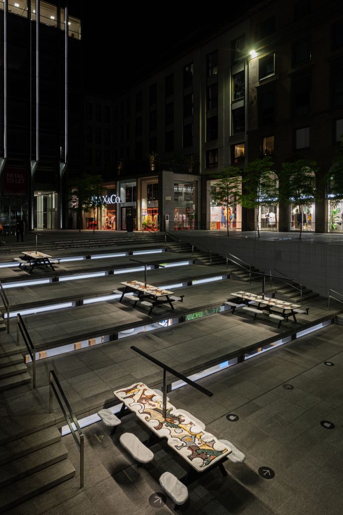 L’intervento, in una delle piazze del centro di Milano che ha cambiato volto in modo più sensibile negli ultimi anni, è in dialogo con la personale di Beloufa attualmente in corso presso la Fondazione Pirelli HangarBicocca a cura di Roberta Tenconi e troverà la sua conclusione durante la Milano Art Week a settembre.