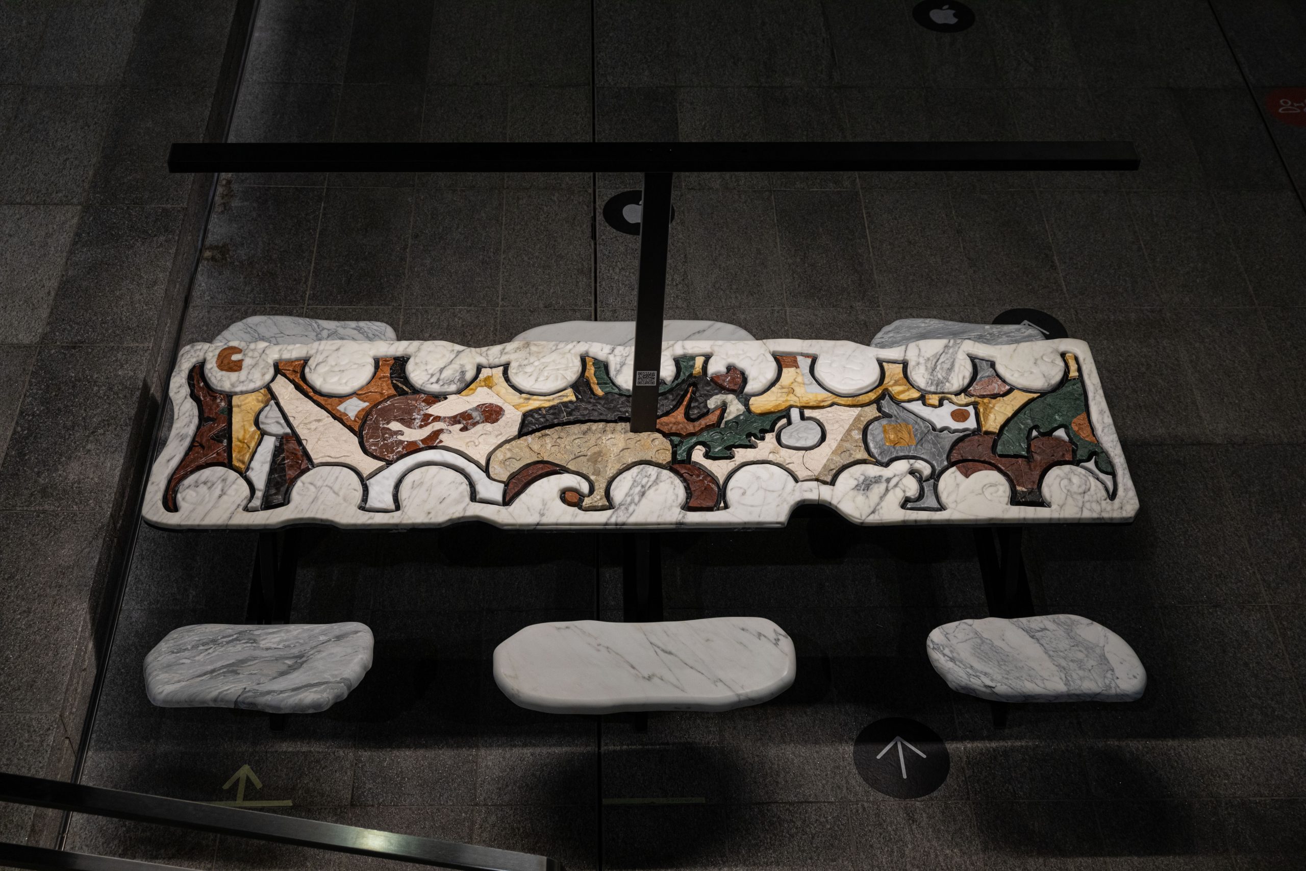 Fondazione Henraux presenta The Moral of the Story dell’artista franco-algerino Neïl Beloufa (Parigi, 1985), a cura di Edoardo Bonaspetti. Il progetto, concepito per lo spazio pubblico dell’anfiteatro di Apple Piazza Liberty a Milano, è composto da quattro installazioni decorate con bassorilievi e intarsi di marmi policromi che raffigurano i capitoli di una favola scritta dall’artista.