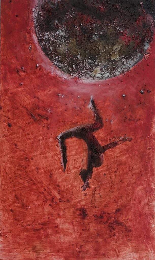 Barbara Nicoletto s’avventura negli spazi siderali, abitati da pianeti, da macchine volanti e da corpi che paiono avere perso ogni centro di gravità, con qualche animale fantastico che pare avervi fatto ritorno, dopo che se n’era immaginata una scomparsa che forse mai è avvenuta veramente, almeno oltre la nostra Terra; sontuosa è la materia pittorica cui l’artista fa ricorso, per rendere ancora più palpitanti e misteriosi i mondi evocati. Saranno esposte diverse opere dell’ultimo ciclo pittorico dedicato alle “lune”, opere che Nicoletto ha realizzato con una raffinata ricerca utilizzando materiali come sabbie e ossidi che le hanno permesso di realizzate superfici ossidate.