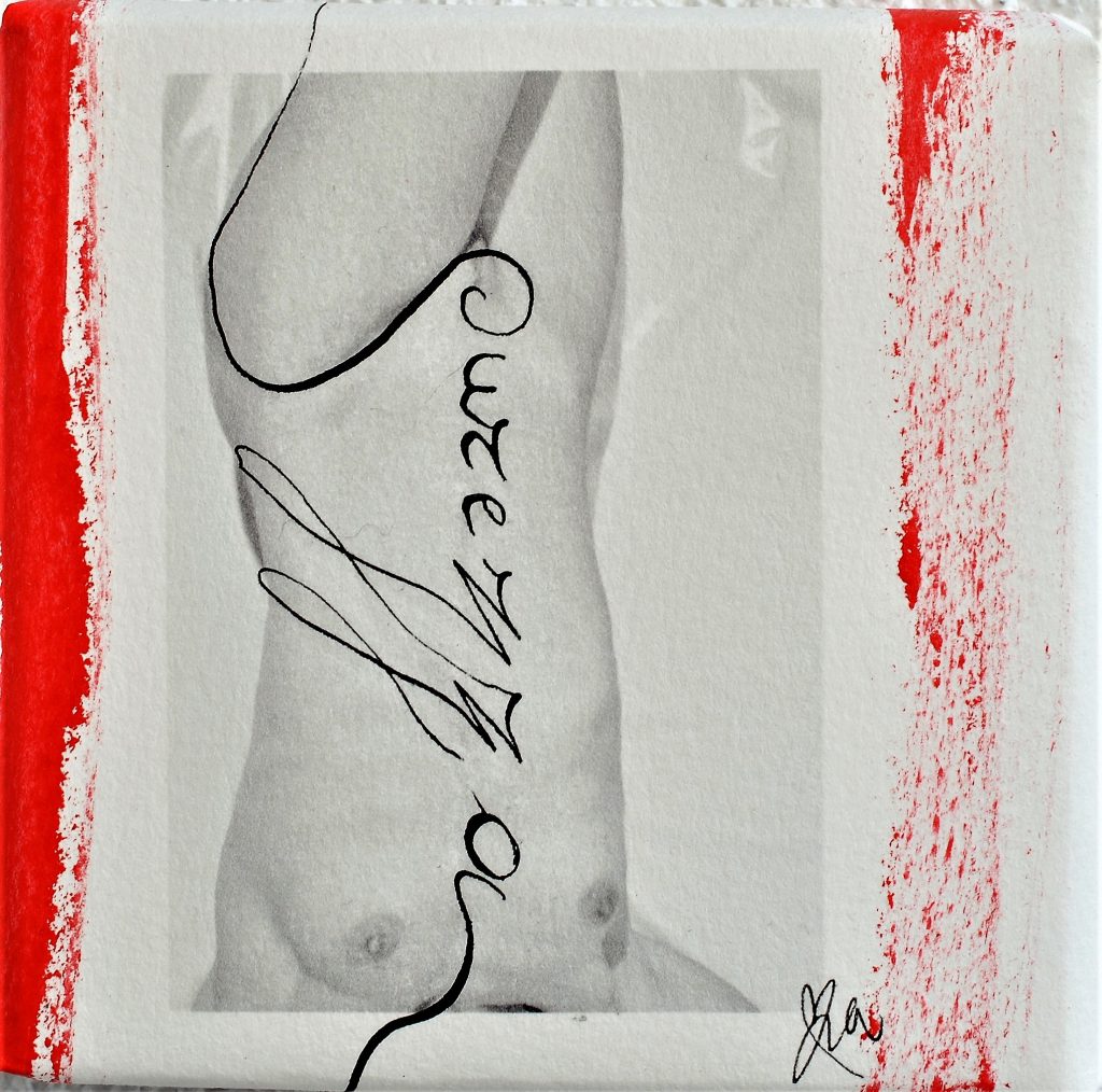 nuditudine – poject - è un progetto nato nel periodo di lock down del 2021. Dopo aver fatto una Call sui social in cui chiedevo, a chi volesse mettersi in gioco nel definire con una sola parola lo stato di nudità e solitudine, da cui ha coniato il neologismo nuditudine, ha avuto risposta da cinquantacinque persone. Dunque, ogni parola suggerita è stata trasformata in opera sovrascrivendola ad uno degli scatti fotografici da me realizzati. Ogni singola parola è stata dunque sovrascritta ad una delle mie immagini fotografiche rappresentanti degli spaccati di corpo femminile, piuttosto che maschile, seguendo con pennino e china le linee del corpo, tentando di dare materialità alla parola stessa, nonché tentare di evidenziare come il corpo può impersonare per evocazione il significato stesso di quella tal parola. Un lavoro attento, di osservazione e riflessione di come siamo composti anche da parole che generiamo, piuttosto che utilizziamo. L’aggiunta di pennellate minimali di smalto rosso e il ricamo con geometrie attraverso campate di filo oro sono simbolo di anima, temperamento e luce. Dal punto di vista tecnico, invece, sono composizioni studiate per dare tridimensionalità all’immagine fotografica, la quale per natura proprio rimarrebbe nella bidimensionalità.