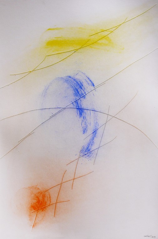 Nella più recente esperienza artistica, sempre su carta trasparente, il segno geometrico, con il rigore costruttivo, viene abbandonato per una espressione più libera che traduce, attraverso l’uso di pastelli colorati e incisioni appena avvertibili, il libero imprevedibile moto della coscienza, in una interpretazione tutta lirico musicale. Oggi questo linguaggio si arricchisce sulla carta di toni e di gesti acquerellati acquistando una più intima densità di significati.