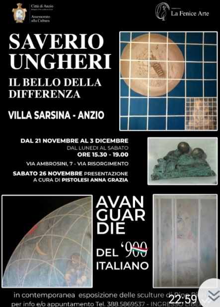 Nella bella location di Villa Sarsina ANZIO sono esposte fino al 3/12/2022 importanti opere di SAVERIO UNGHERI alcune del ciclo…