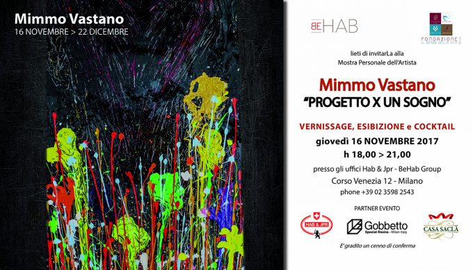 Mostra Personale MIMMO VASTANO | [progetto x un sogno] 16 Novembre > 22 Dicembre Inaugurazione 16 novembre 2017 ore 18,00…