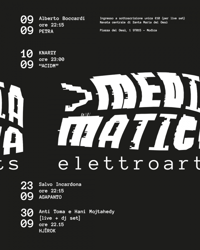 MEDIAMATICA elettro arts Mediamatica è la prima verifica in questa area geografica rivolto alle arti elettroniche performative. Tutto nasce come…