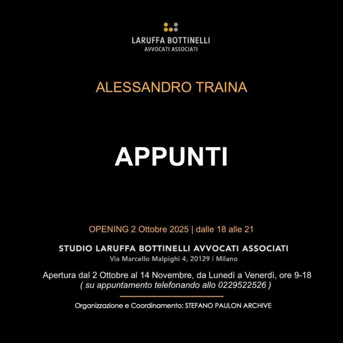 Alessandro Traina APPUNTI 2 ottobre - 14 novembre 2025 Inaugurazione: giovedì 2 ottobre 2025 ore 18 Giovedì 2 ottobre lo…