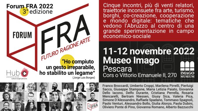 Al via la terza edizione del Forum FRA Futuro Ragione Arte, il Forum ideato e curato dall’Associazione HUB-C di Pescara…