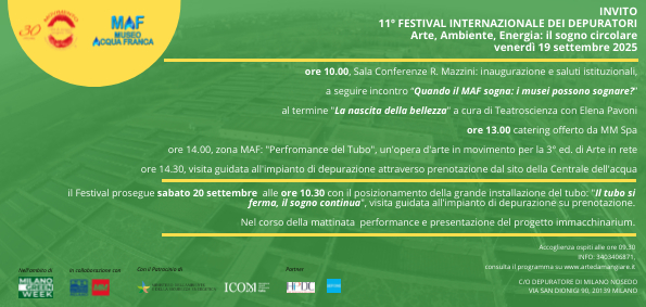Al MAF–Museo Acqua Franca l’arte incontra l’ambiente al 11° Festival Internazionale dei Depuratori (19-20/09). Performance, installazioni, danza e 40 artisti…