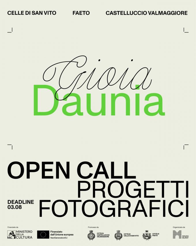 Spazio Murat, con la curatela di Luca Musacchio, presenta la prima edizione del Premio di Fotografia GIOIA DAUNIA, un’occasione unica…
