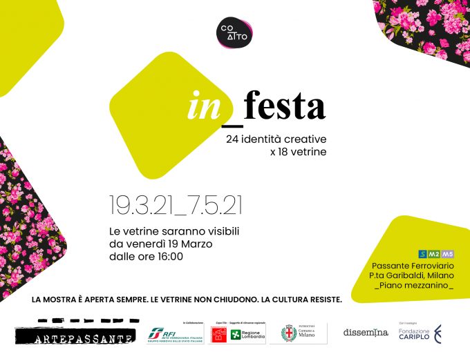 in_festa 24 identità creative x 18 vetrine dal 19 marzo.2021 al 7 maggio 2021 co_atto Passante Ferroviario P.ta Garibaldi, Milano…