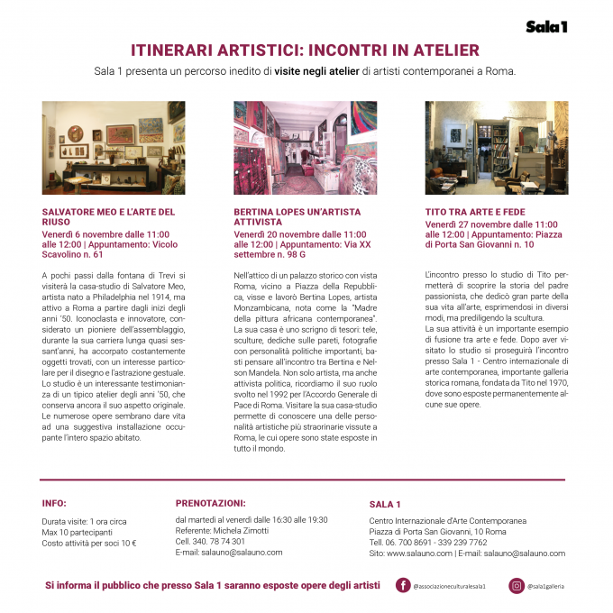 Sala 1 propone un percorso di visite guidate inedite in atelier di artisti ed espone le loro opere in galleria.…