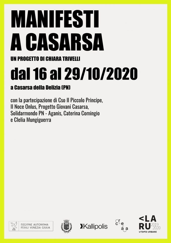 Manifesti a Casarsa un progetto di Chiara Trivelli Casarsa della Delizia (PN) dal 16 ottobre al 29 ottobre 2020 inaugurazione…
