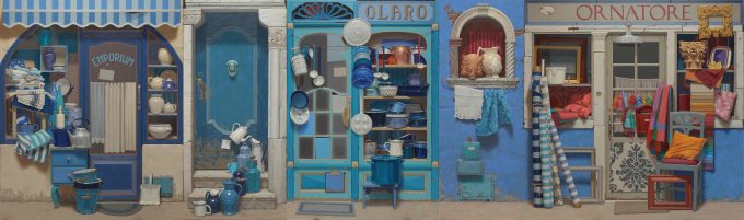 Cinque tavole di oltre 6 metri di lunghezza: una composizione scenografica di oggetti di uso comune e botteghe dal sapore…