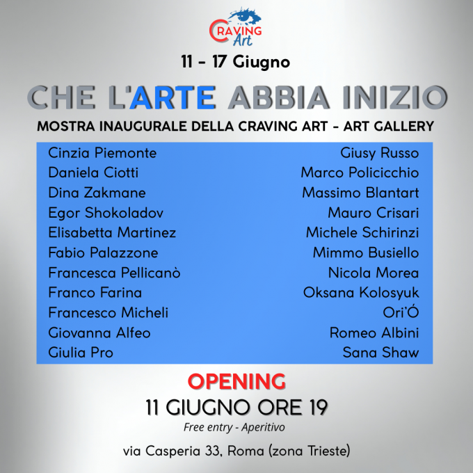 Con questa mostra, letteralmente Craving Art apre finalmente le porte della sua nuova casa a Roma, un luogo nato per…