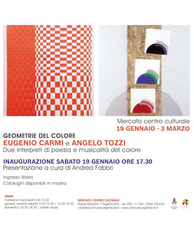 Sabato19 Gennaio alle ore 17.30 al centro culturale Mercato di Argenta (Ferrara) è prevista l'inaugurazione della mostra “Geometrie del colore.…