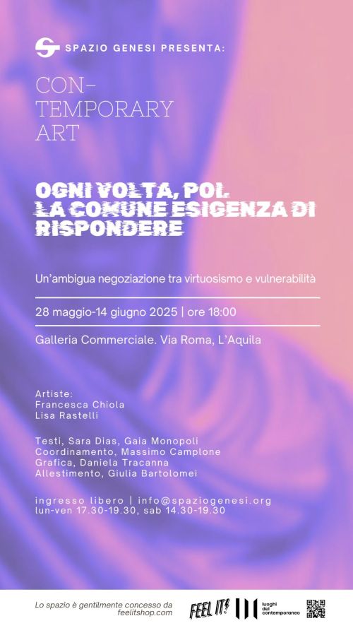 Mercoledì 28 maggio presso Spazio Genesi, Ogni volta, poi. La comune esigenza di rispondere. Il dialogo tra le artiste Francesca…