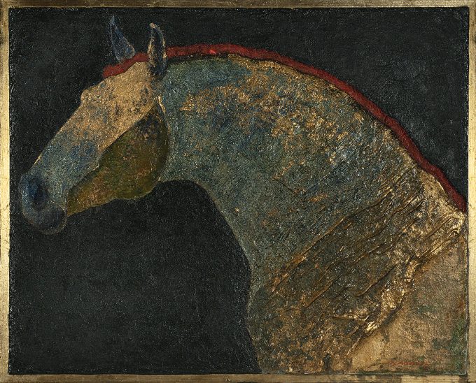 Con questo grande collage (180 x 250) l’artista ha voluto esprimere l’inquietudine della natura di fronte ai cambiamenti climatici. Su…