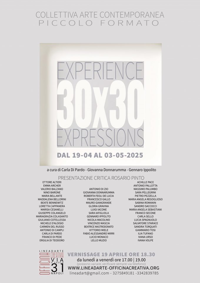 Mostra collettiva “Experience 30×30 Expressions”, un’originale esposizione dedicata all’arte contemporanea di piccolo formato 30×30. L’evento si terrà il 19 aprile…