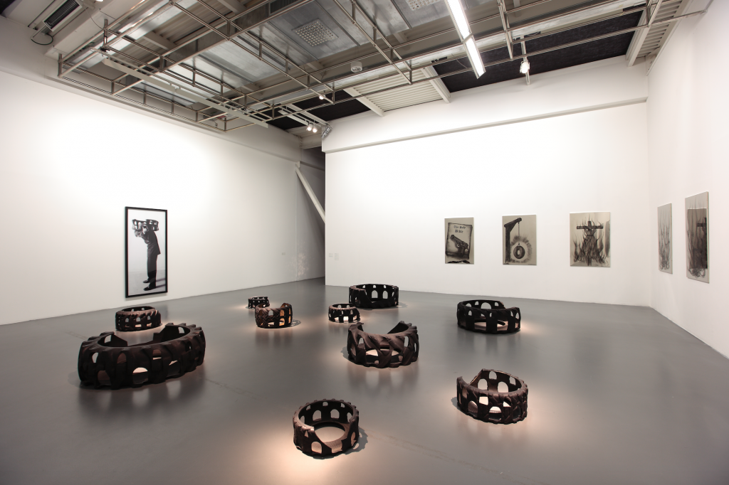 L’ambiguità delle opere di Canevari, sospese nella loro estetica brutale tra ironia e inquietudine, è emblematica della trasformazione sia concettuale che formale dei materiali industriali. Il petrolio e le sue applicazioni (gomma sintetica, olio motore di scarico, ecc.) sono al centro del suo linguaggio; nelle sue mani diventano simboli ambigui della violenza sistemica che permea il mondo in declino di oggi, dove la minaccia della guerra – in nome di valori spirituali e monetari – è incessante, e la memoria dell’umanità tragicamente troppo breve.