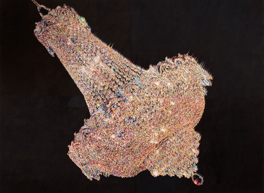 Nella produzione di Yee Sookyung (1963), centrale è la rielaborazione di tecniche e motivi iconografici delle antiche credenze religiose coreane e la loro traduzione in forme nuove e contemporanee. L’opera The Other Side of The Moon (2014) è costituita da una serie di frammenti di ceramica invetriata nera – proveniente dalla Corea del Nord – ricomposti e rifiniti nei punti di giuntura con oro a 24K. La scultura fa parte della serie Translated vase, esposta alla Biennale di Venezia 2017 e realizzata recuperando materiali di scarto preziosissimi – porcellane distrutte dei sapienti maestri ceramisti coreani – ricongiunti ad hoc come in puzzle culturale. In coreano, le parole ‘crepa’ e ‘oro’ hanno lo stesso suono, geum. Le opere di Yee sono così metafora della vita, della capacità di integrare le difficoltà e mettere in valore la sofferenza.