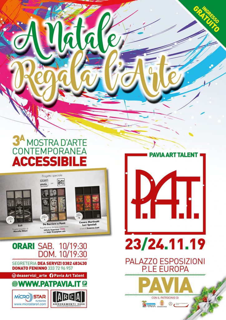 Una mostra collettiva che valorizza e porta alla luce talenti nascosti: circa 100 artisti, tra pittori, scultori e fotografi italiani con opere uniche ed originali che spesso non trovano modalità e canali idonei a proporre le proprie opere ad un pubblico ampio e variegato saranno i protagonisti di P.A.T.